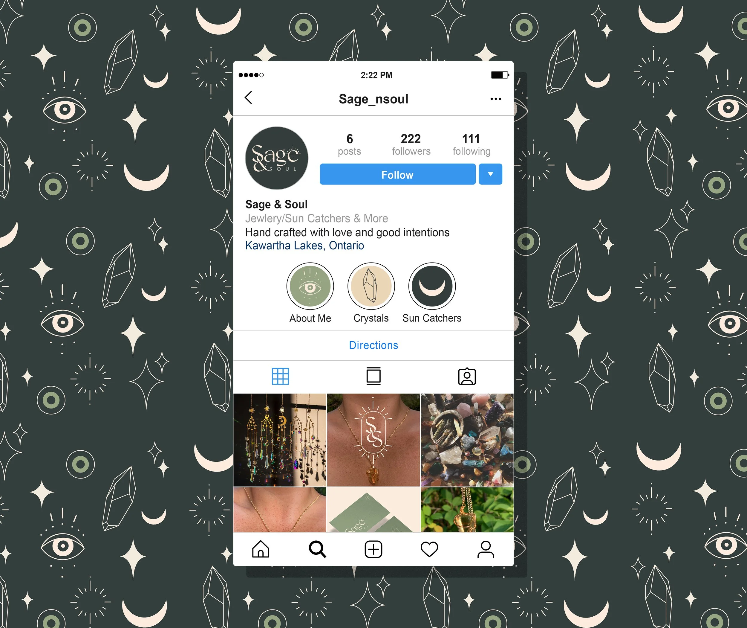 Crystals emit positive, uplifting, energizing, and calming vibrations that help you achieve a more peaceful mind and a revitalized physical state of being. With an ever growing love for crystals Sage & Soul was created. Sage & Soul is a home and jewelry business, handcrafted with love and good intentions.