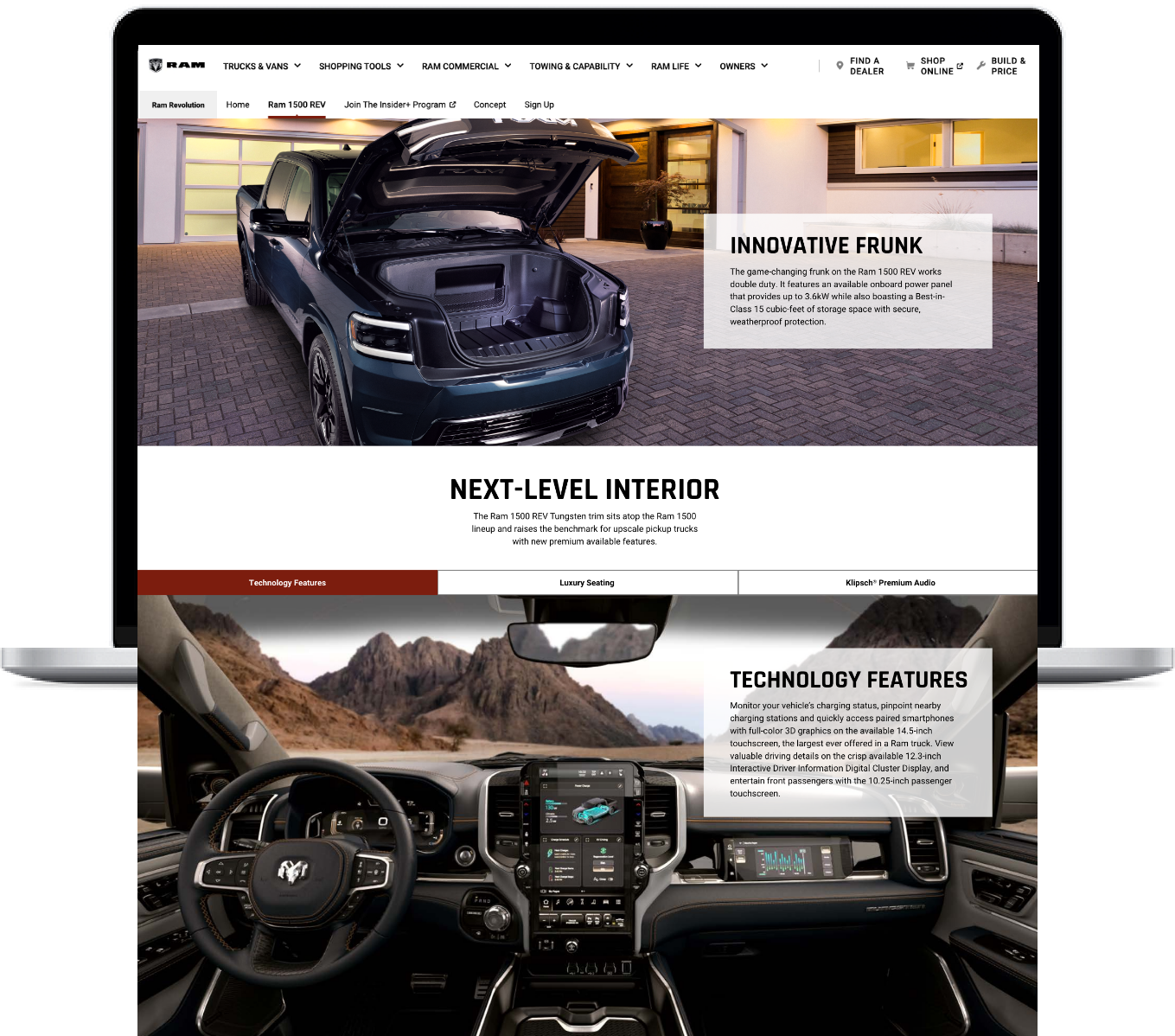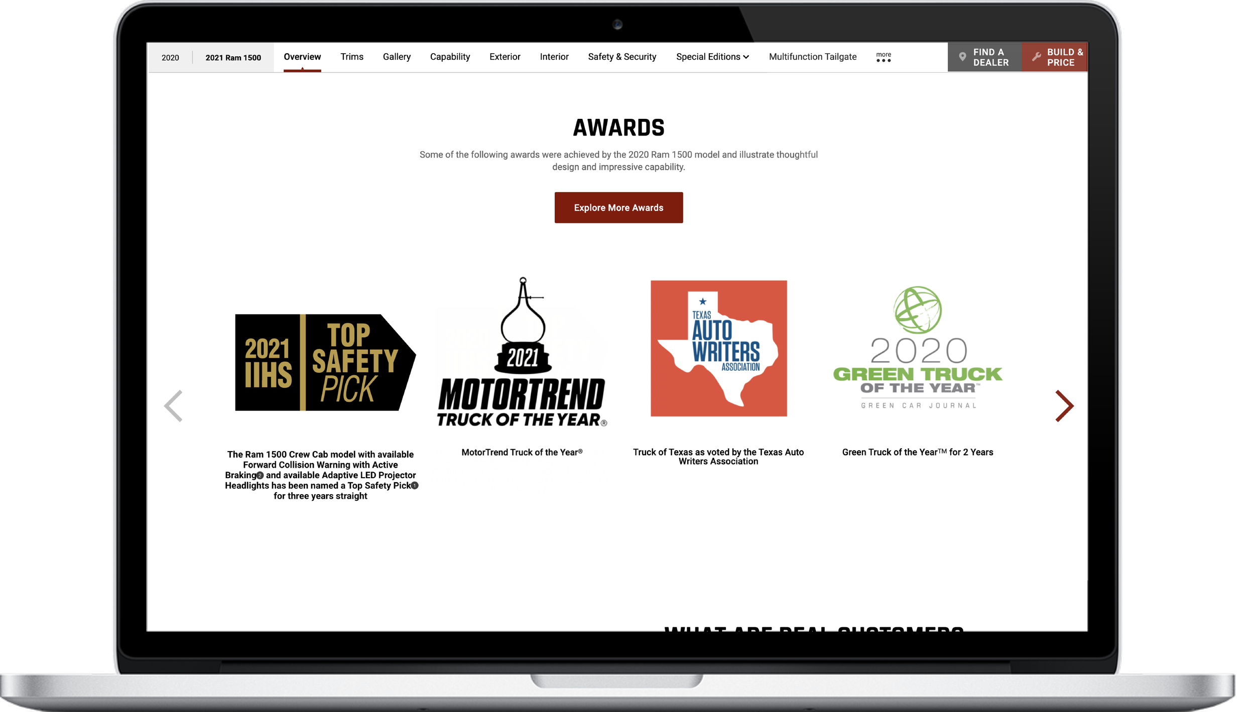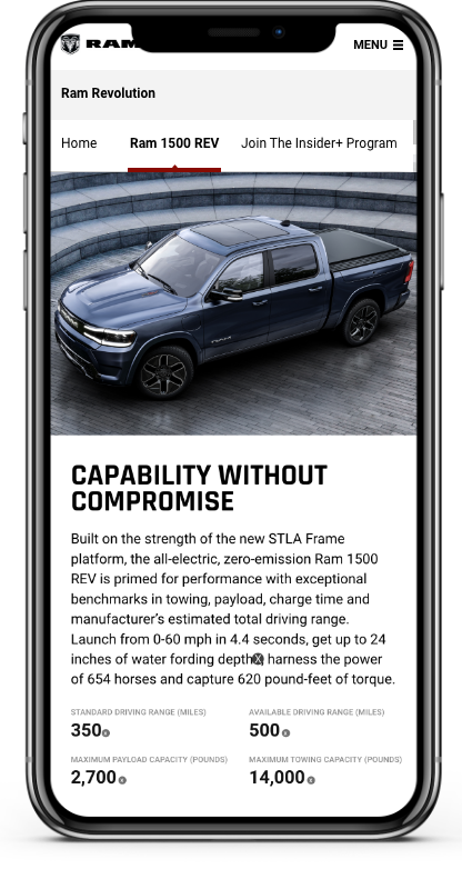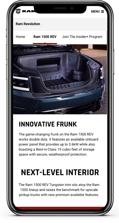 The Ram brand is honoured to be named a Top Safety Pick in 2021 by the Insurance Institute for Highway Safety. To showcase this award I have implemented it on various places on the Ram site, such as the 1500 DT Vehicle Landing page, safety and security pillar page and the brand home page.