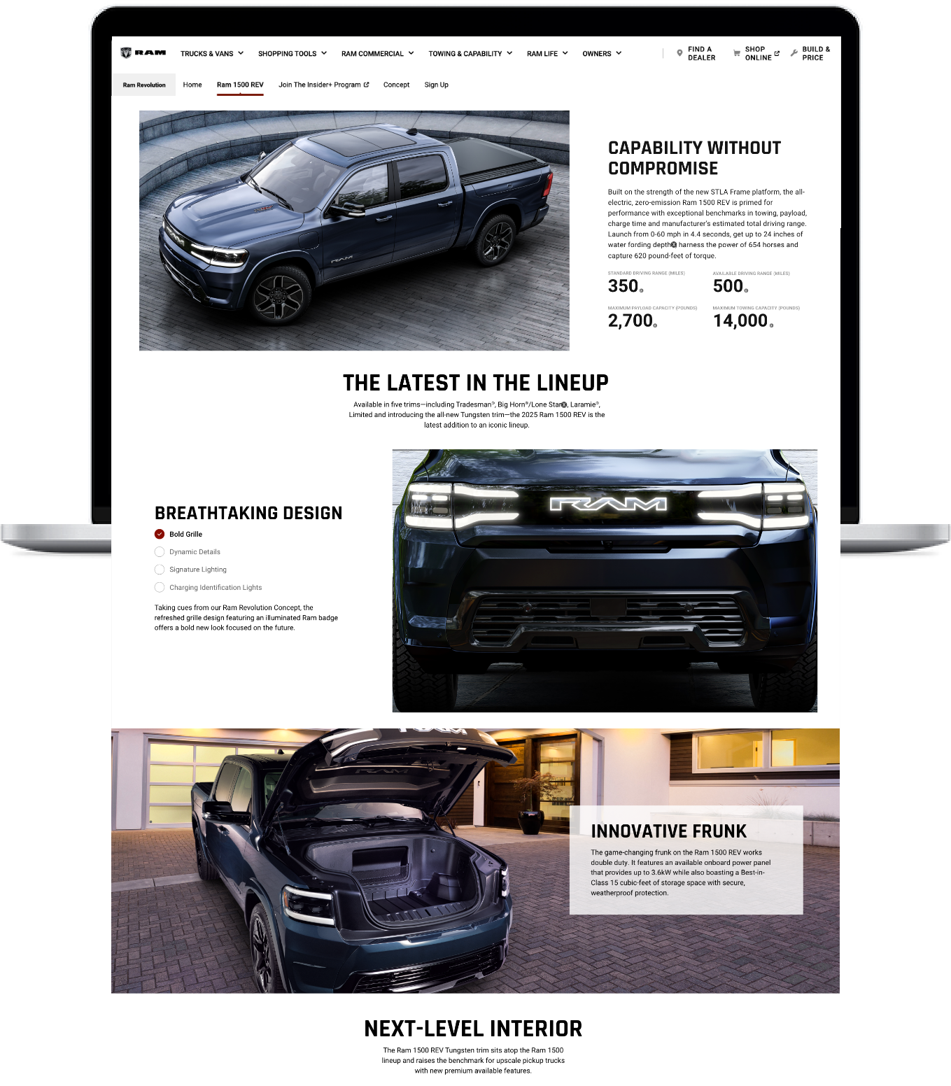 The truck industry is due for a revolution and the Ram 1500 REV is ready to charge forward with a new exterior design, cutting-edge technology and exceptional electric capability.